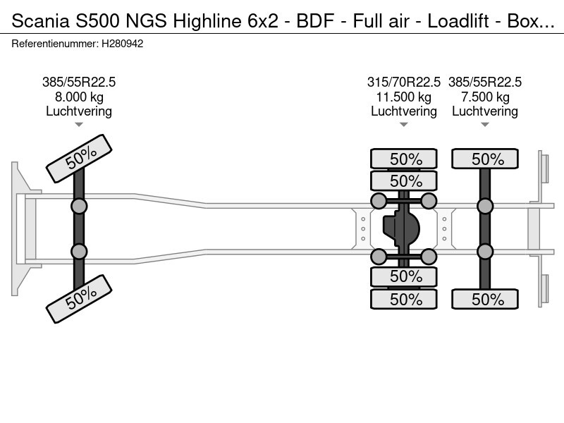 Scania S500 NGS Highline 6x2 - BDF - Full air - Loadlift - Box - Navi - Retarder