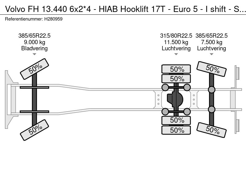 FH 13.440 6x2*4 - HIAB Hooklift 17T - Euro 5 - I shift - Steering axle