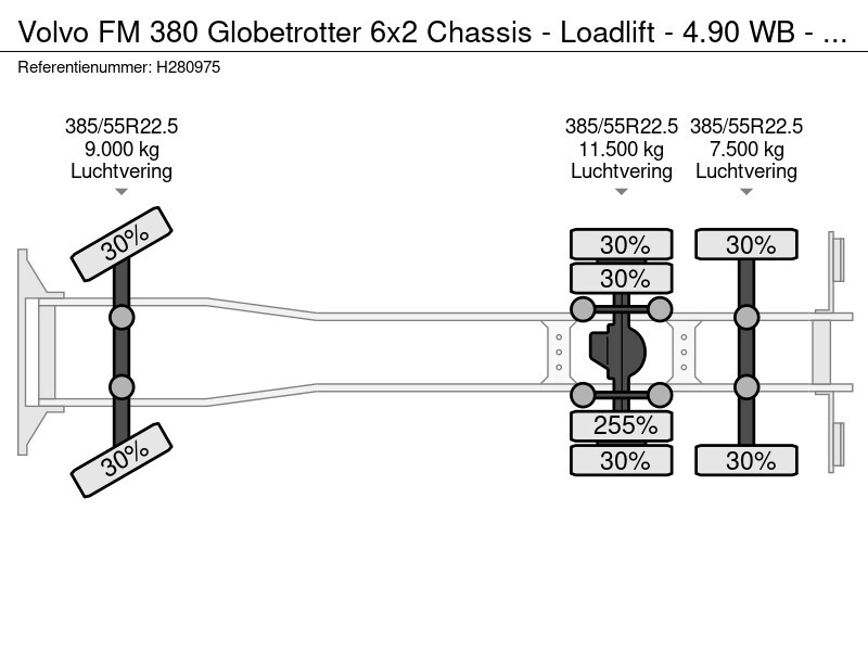 Volvo FM 380 Globetrotter 6x2 Chassis - Loadlift - 4.90 WB - Full air - Low KM