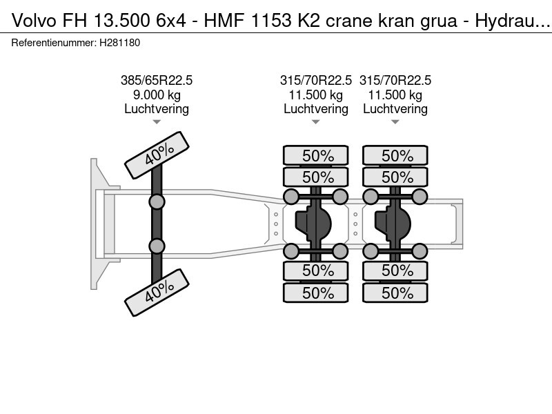 FH 13.500 6x4 - HMF 1153 K2 crane kran grua - Hydraulic - Lift axle - Euro 6