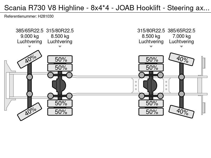 R730 V8 Highline - 8x4*4 - JOAB Hooklift - Steering axle - Full air - Night clima