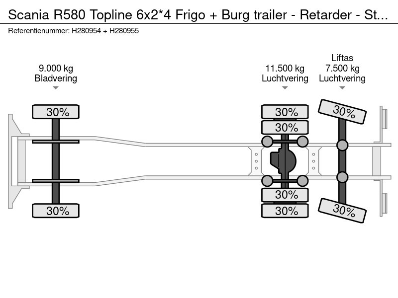 Scania R580 Topline 6x2*4 Frigo + Burg trailer - Retarder - Steering axle - Night clima