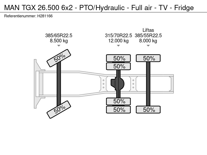 MAN TGX 26.500 6x2 - PTO/Hydraulic - Full air - TV - Fridge