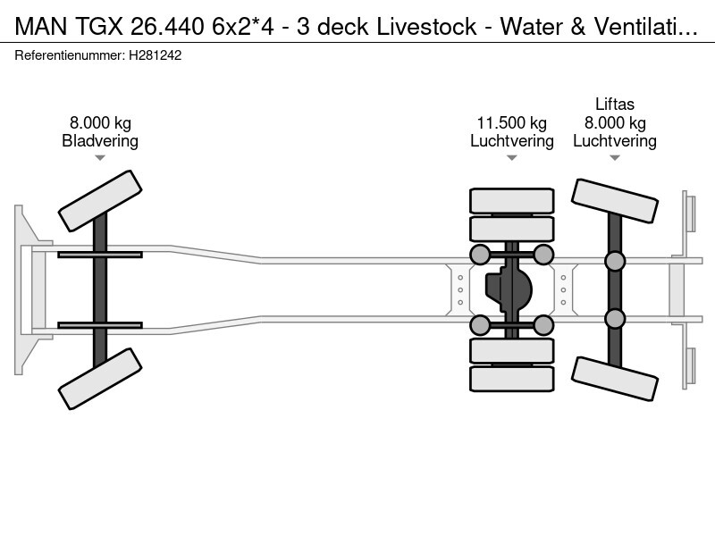 MAN TGX 26.440 6x2*4 - 3 deck Livestock - Water & Ventilation - Manual gearbox - Steering axle