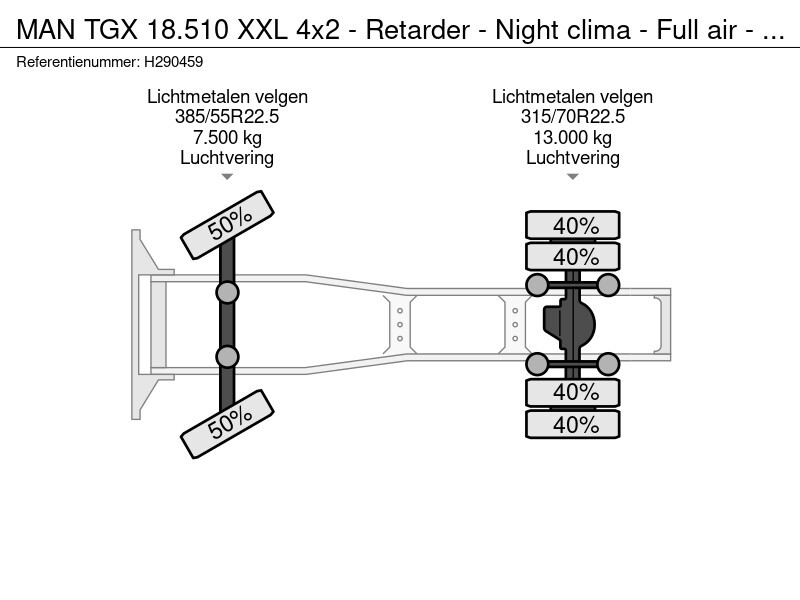 MAN TGX 18.510 XXL 4x2 - Retarder - Night clima - Full air - Alloy - 2x tank