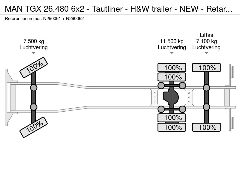 MAN TGX26.480 6x2 - Tautliner - H&W trailer - NEW - Retarder - Full air -