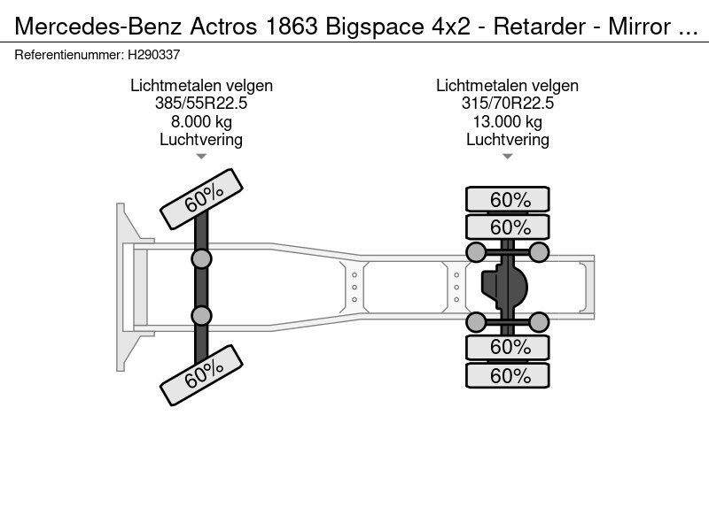 Actros 1863 Bigspace 4x2 - Retarder - Mirror cams - Leather - Alloy wheels - Driver Extent+