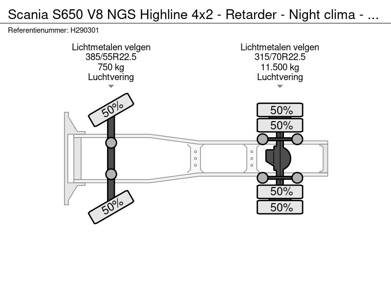 Scania S650 Highline 4x2 - Retarder - Night clima - Full air - Leather - 2x tank - Full spec!