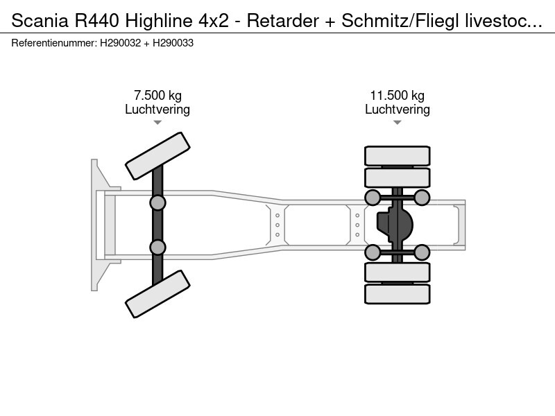 R440 Highline 4x2 - Retarder + Schmitz/Fliegl livestock trailer - 2 stock - Loadlift - Water & Ventilation - 2x steering axle