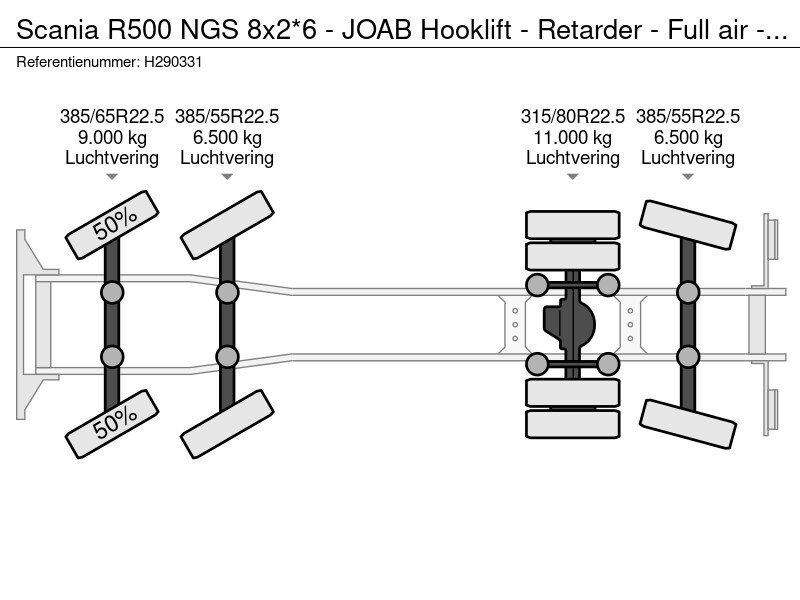 Scania R500 NGS 8x2*6 - JOAB Hooklift - Retarder - Full air - 3x steering - Custom interior