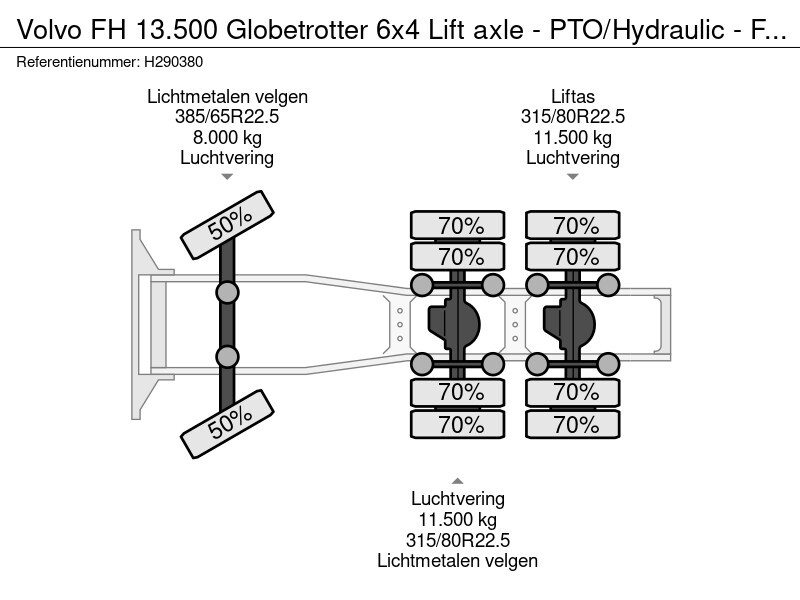 Volvo FH13.500 Globetrotter 6x4 Lift axle - PTO/Hydraulic - Full air - Alloy wheels